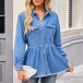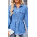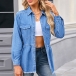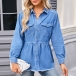 Fashion Stand Collar Long Sleeve Frayed Hemline Denim Shirt
