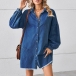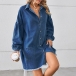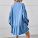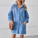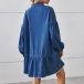 Fashion Stand Collar Long Sleeve Frayed Loose Denim Dress