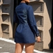 Fashion Stand Collar Long Sleeve Front Button Cinch-waist Old-washed Denim Dress