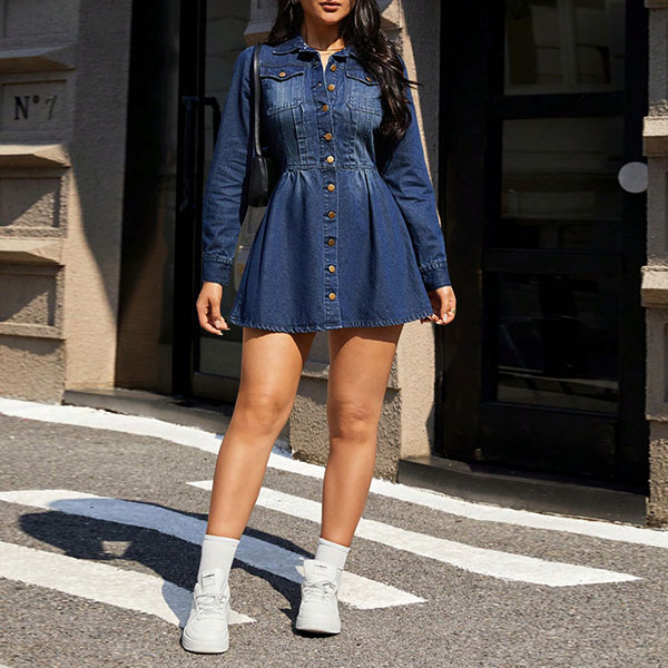 Discover timeless casual elegance with this perfectly crafted denim dress that brings classic style into contemporary fashion with sophisticated details and flattering construction. The stand collar adds structured polish and modern appeal while creating a refined neckline that elevates the overall silhouette beyond typical casual denim pieces. The old-washed finish delivers that coveted vintage character and lived-in softness that feels authentic and effortlessly cool, while the front button closure creates classic shirt-dress appeal with versatile styling options. The cinched waist detail provides beautiful shape definition and creates that flattering hourglass silhouette that works beautifully on multiple body types.Perfect for creating effortless looks that work for weekend brunches, casual office environments, shopping days, or anytime you want to look polished without trying too hard.
