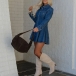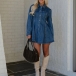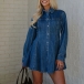 This timeless dress features structured stand collar with classic front button closure and vintage old-washed denim for sophisticated casual elegance. Pair with boots and crossbody bags for casual vintage elegance.