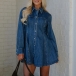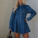 Fashion Stand Collar Long Sleeve Front Button Old-washed Denim Dress