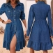 Crafted from durable and high-quality denim fabric, this dress is designed to be both fashionable and functional. The stand collar adds a contemporary and chic element to the dress, making it a stylish and on-trend option for everyday wear. This denim dress is a versatile and practical addition to your closet that will make you feel effortlessly chic and on-trend.