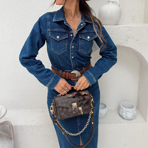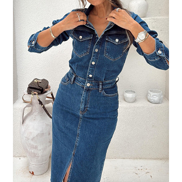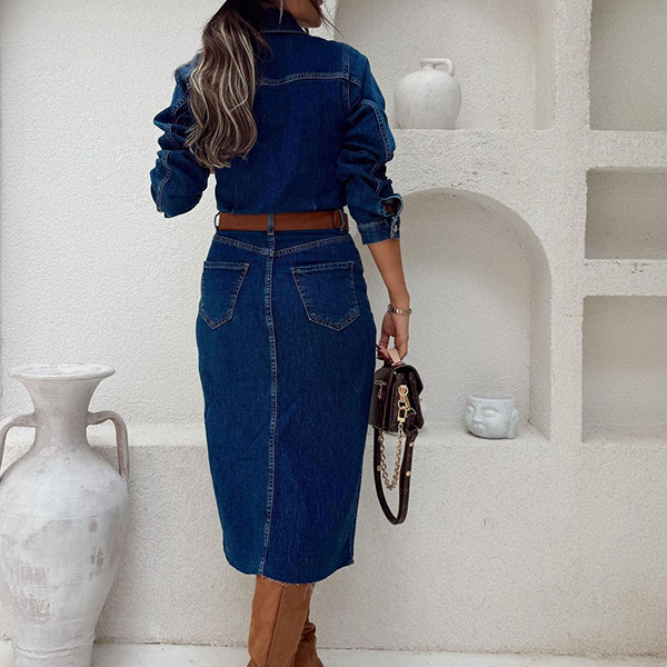 Embrace effortless style with this Denim Dress. This chic dress features a classic stand collar and button-up front, giving it a timeless appeal. The long sleeves add sophistication, while the frayed hemline provides a trendy, edgy touch. Perfect for casual outings or weekend brunch, pair it with ankle boots or sneakers to complete your laid-back look!