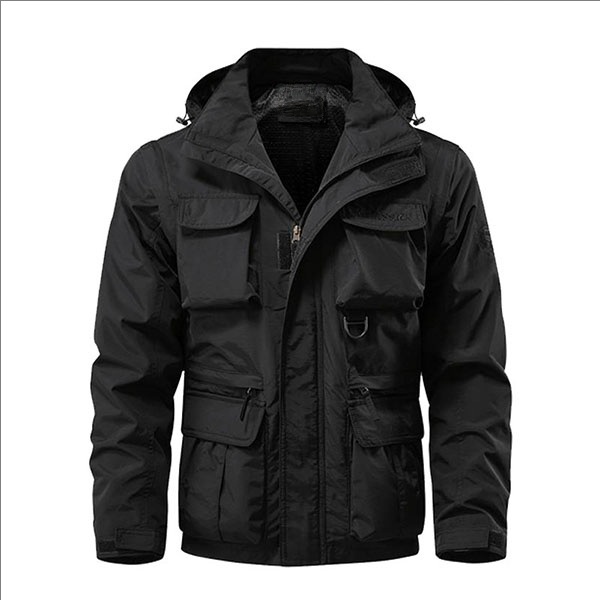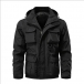 Fashion Stand Collar Long Sleeve Front Zipper Multi-pockets Hooded Jacket for Men
