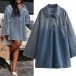 Fashion Stand Collar Long Sleeve Half-zip Loose Shirt/Mini Dress