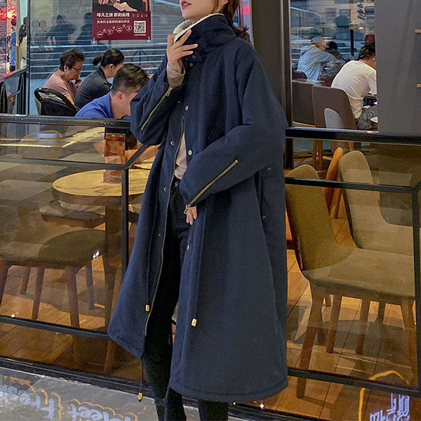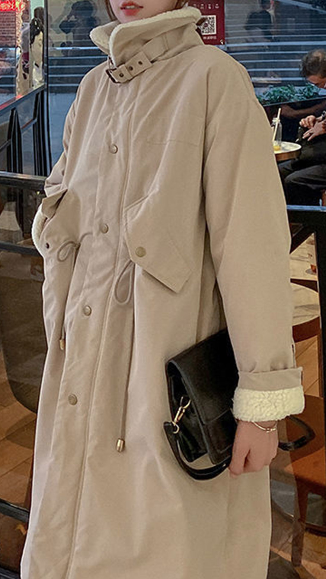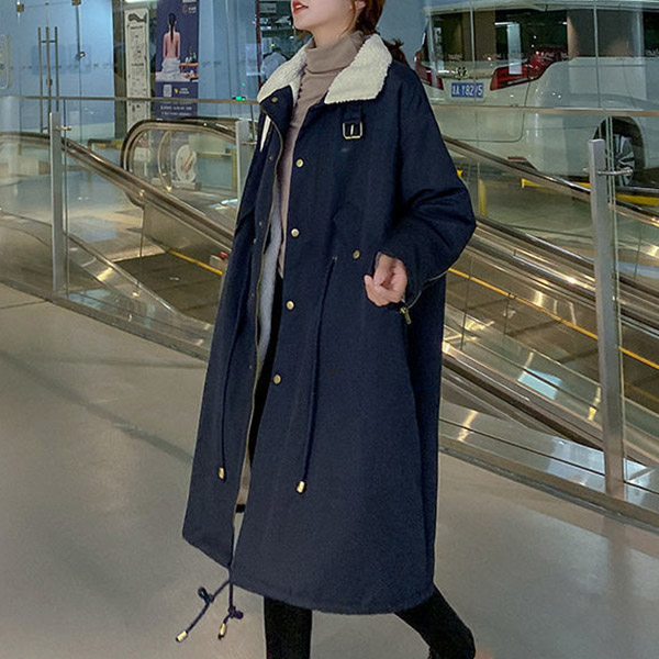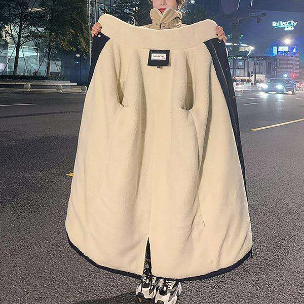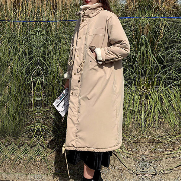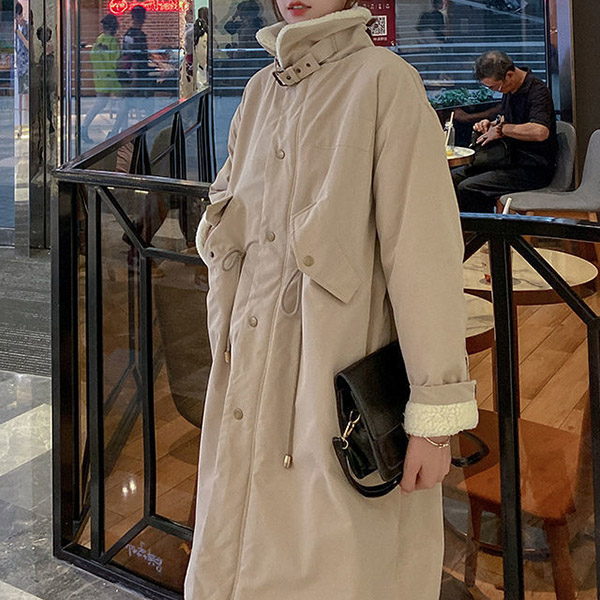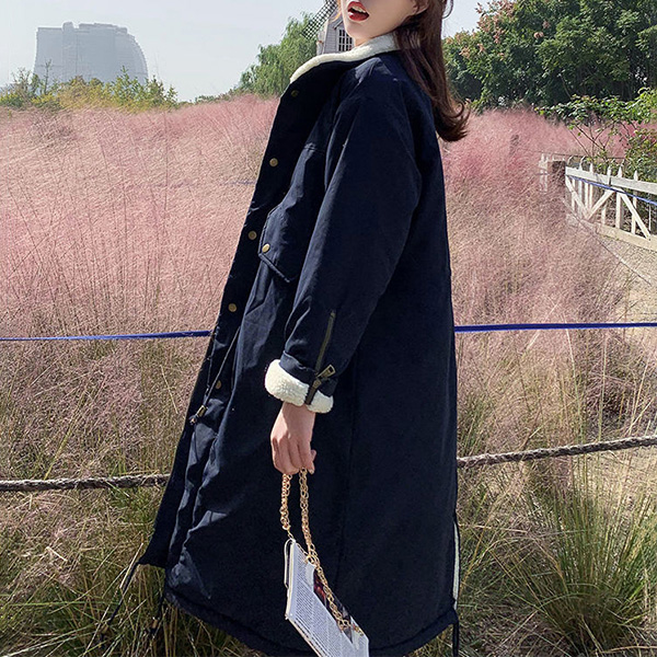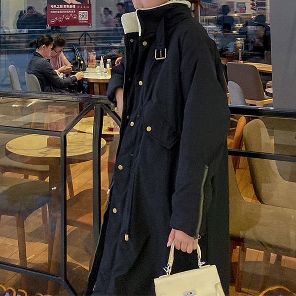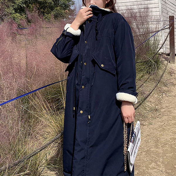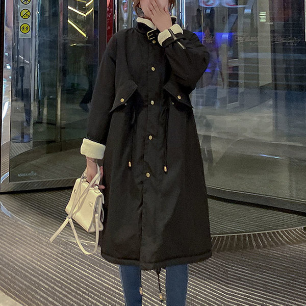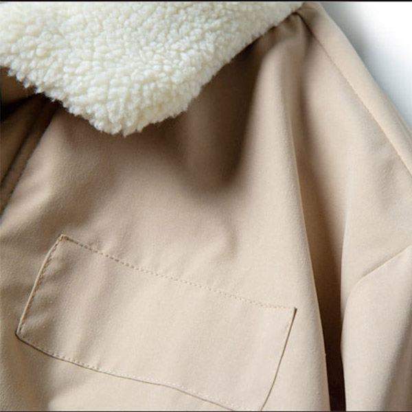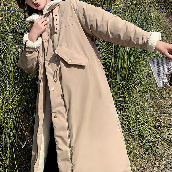 Fashion Stand Collar Long Sleeve Lamb Fleece Lined Parka Coat