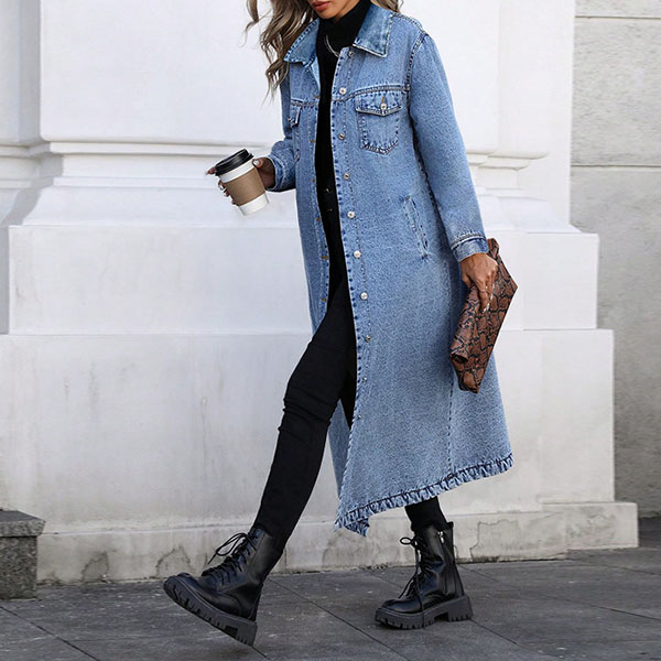 This exceptional jacket represents the perfect evolution of the classic denim jacket, offering enhanced sophistication and versatility that makes it an essential wardrobe staple for modern dressing. The longline construction creates a more refined silhouette than traditional cropped denim jackets while providing additional coverage that works beautifully with high-waisted bottoms and creates stunning proportions with dresses and skirts. Wanna have a try?