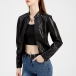 Fashion Stand Collar Long Sleeve Rivet Artificial Leather PU Crop Jacket