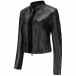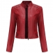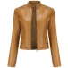 This crop jacket features a stand collar, long sleeves, and rivet detailing on the shoulder and in artificial leather PU material. Multi-colors available.