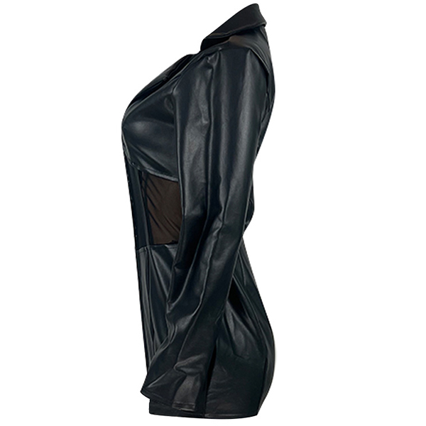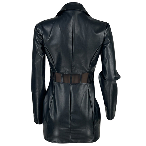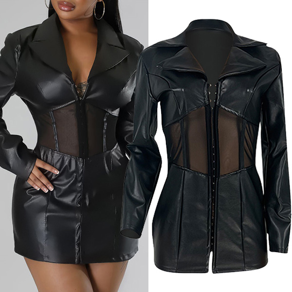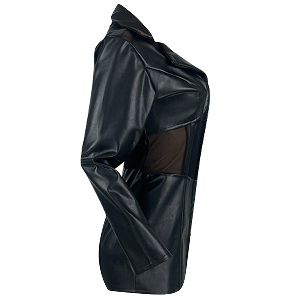 This Fashion Artificial Leather PU Dress is the perfect combination of style and sexy. The dress features a stand collar, long sleeves, and a semi-through design with a gauze spliced artificial leather PU material. The dress is perfect for any occasion, from a night out on the town to a formal event. The dress is sure to turn heads and make you stand out in the crowd.