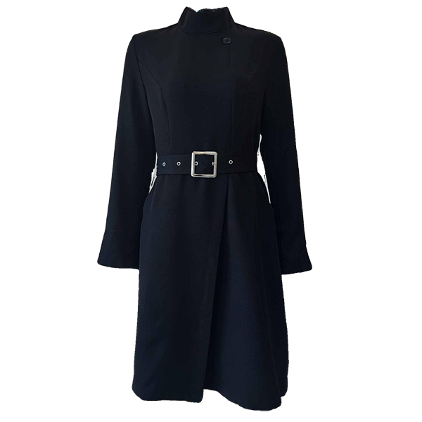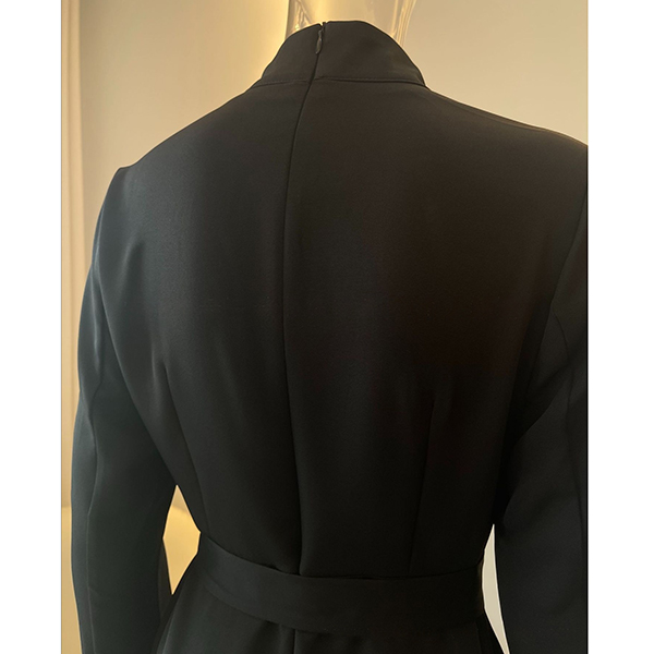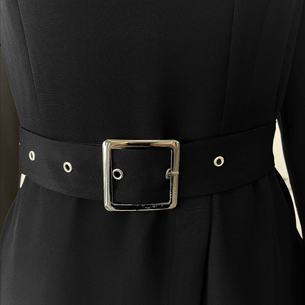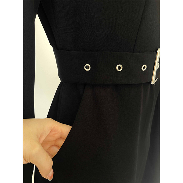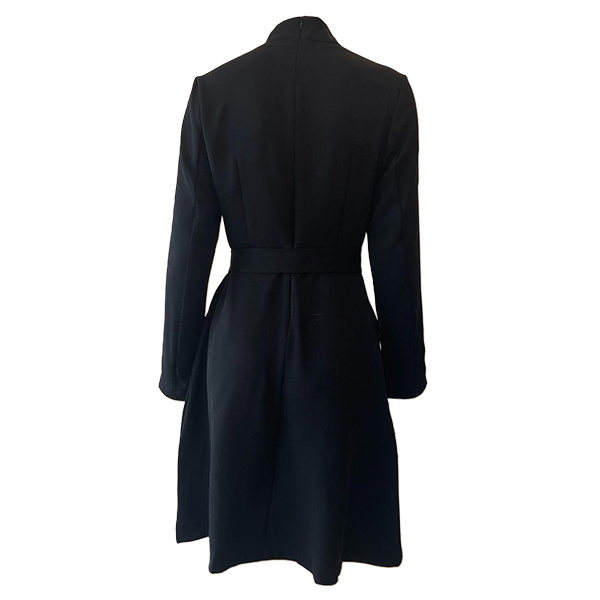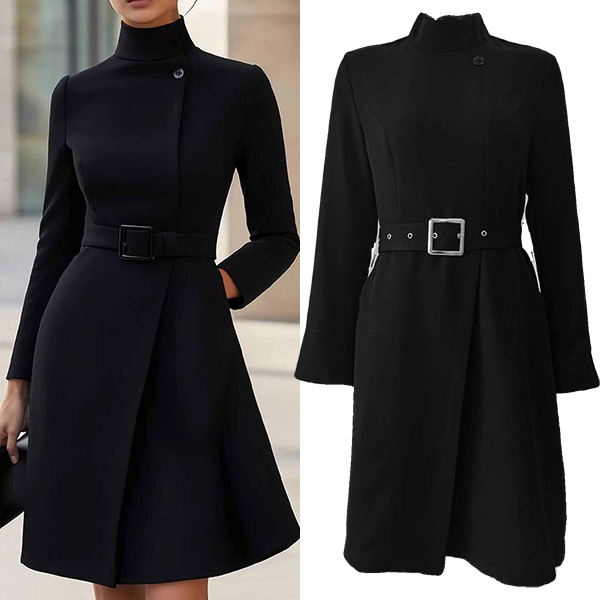 This sophisticated dress combines structured elegance with contemporary design elements. The stand collar creates refined neckline definition and polished professional appeal, while the long sleeves provide complete coverage with sleek proportions. The side slit adds graceful movement and subtle leg-flattering detail without compromising sophistication.The included belt allows for customizable waist definition and silhouette shaping, creating versatile styling options from fitted to relaxed proportions. Hope you like it.