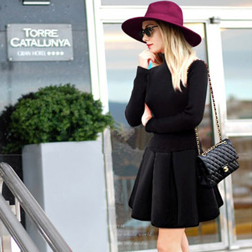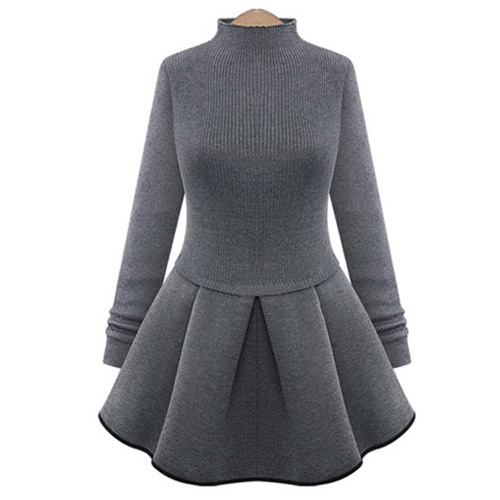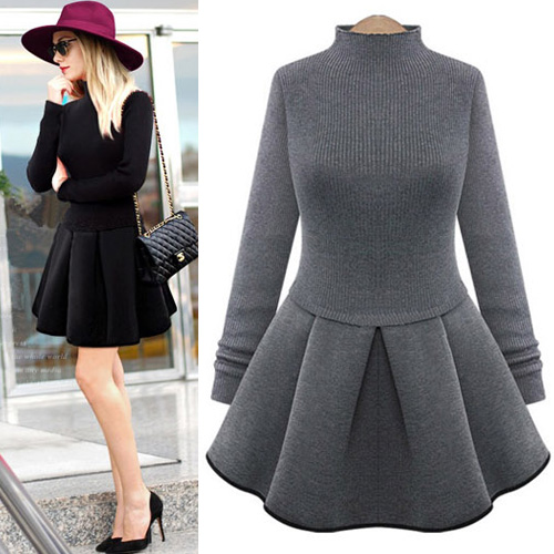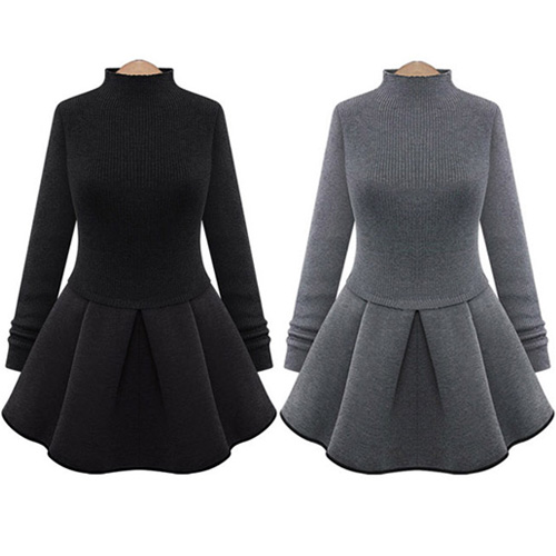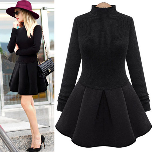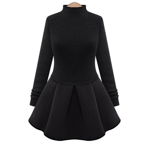 Such a chic and stylish dress. Knitted spliced design,with pleated hemline. Solid color style,