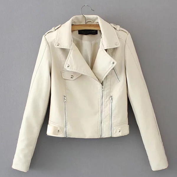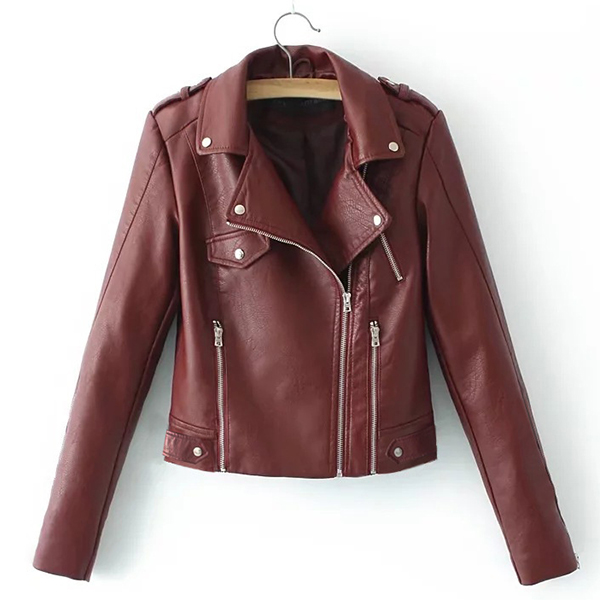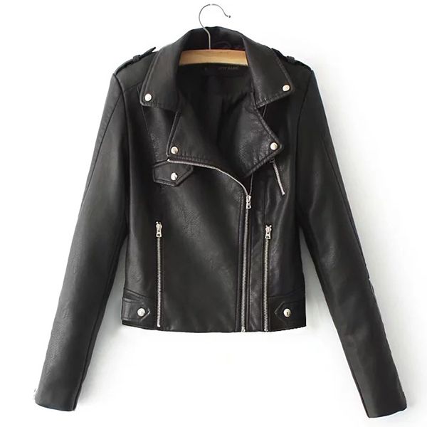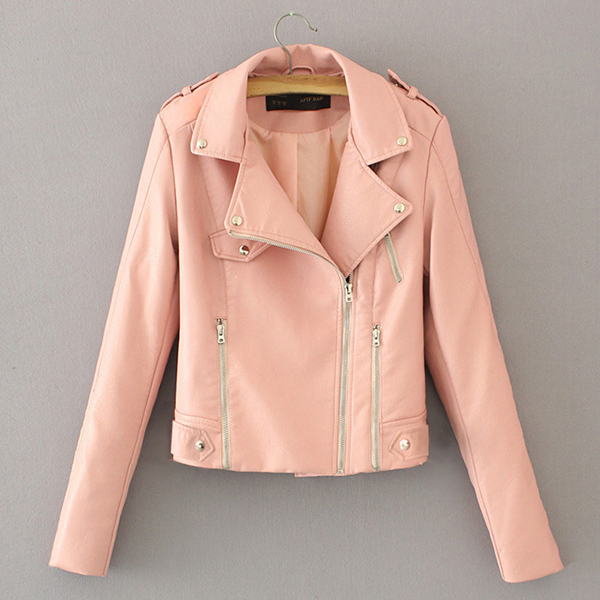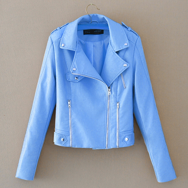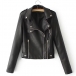 Fashion Stand Collar Long Sleeve Zipper Artificial Leather PU Jacket