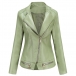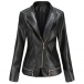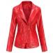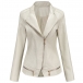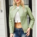 Fashion Stand Collar Notch Lapel Long Sleeve Slant Zipper Artificial Leather PU Jacket
