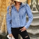 Fashion Stand Collar Puff Long Sleeve Old-washed Denim Shirt