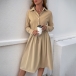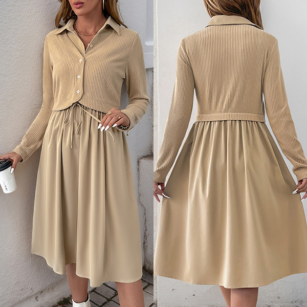 Fashion Stand Collar Ribbed Spliced Long Sleeve Mock-two-piece Dress