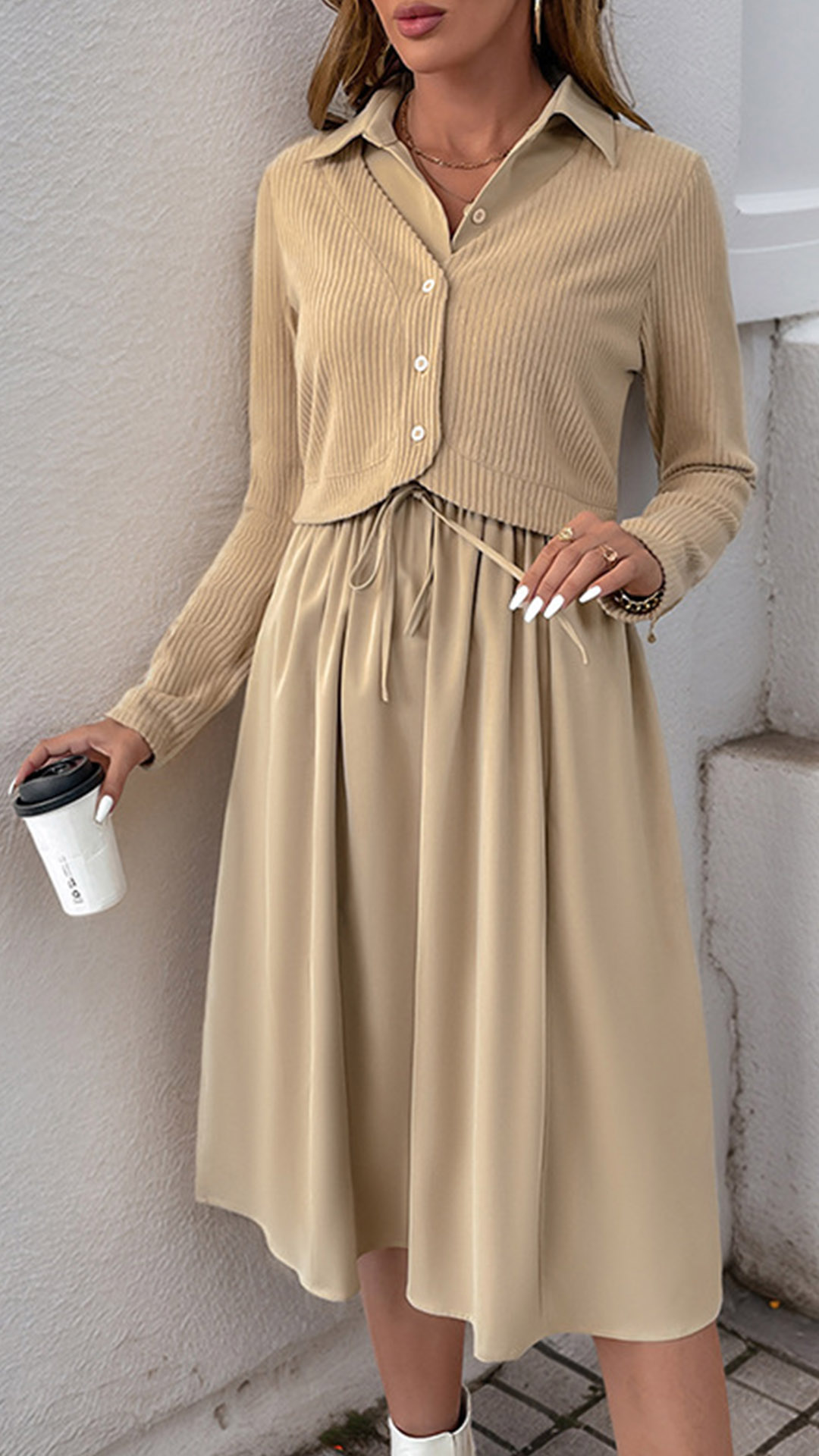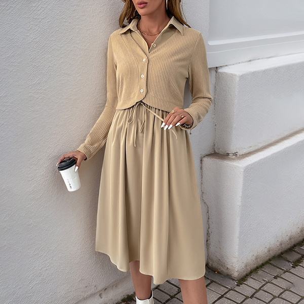 Elevate your style with our Fashion Mock-two-piece Dress. This chic dress features a unique mock-two-piece design, combining a ribbed top with a skirt for a sophisticated and stylish look. Perfect for a day at the office or a special event, this dress can be dressed up with heels or dressed down with flats for a versatile and polished outfit.