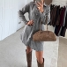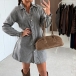 Fashion Stand Collar Ruffle Long Sleeve Front Button Old-washed Denim Dress