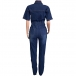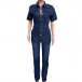 Make a fashion statement with this trendy denim jumpsuit. It features stand collar, short sleeve, front button closure, elastic waist, and old-washed denim fabric. This jumpsuit is versatile and can be styled with sneakers for a casual daytime look!