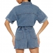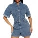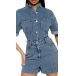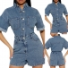This romper is versatile and easy to style, making it a great choice for a casual day out or a stylish event. It features classic stand collar, short sleeve, front button and made of old-washed denim material. Pair it with sneakers or sandals for a relaxed and effortless look.