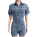 Fashion Stand Collar Short Sleeve Front Button Old-washed Denim Romper