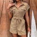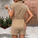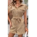 Fashion Stand Collar Short Sleeve Front Button Self-tie Waist Romper