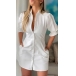 Fashion Stand Collar Short Sleeve Front Button Side Pockets Shirt Dress