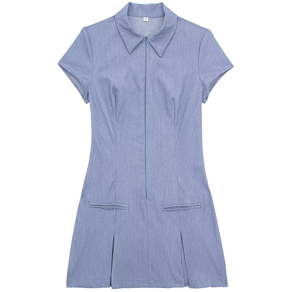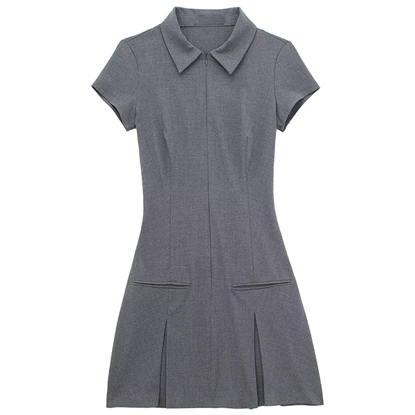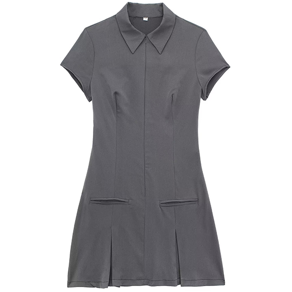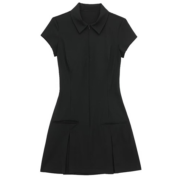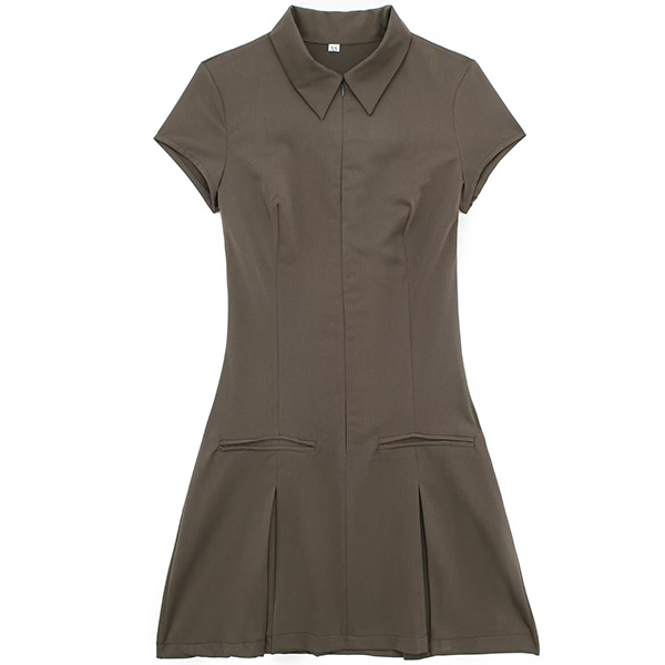 This mini dress features a sophisticated stand collar, short sleeves, a pleated design, and a flattering mini length. Wanna have one?