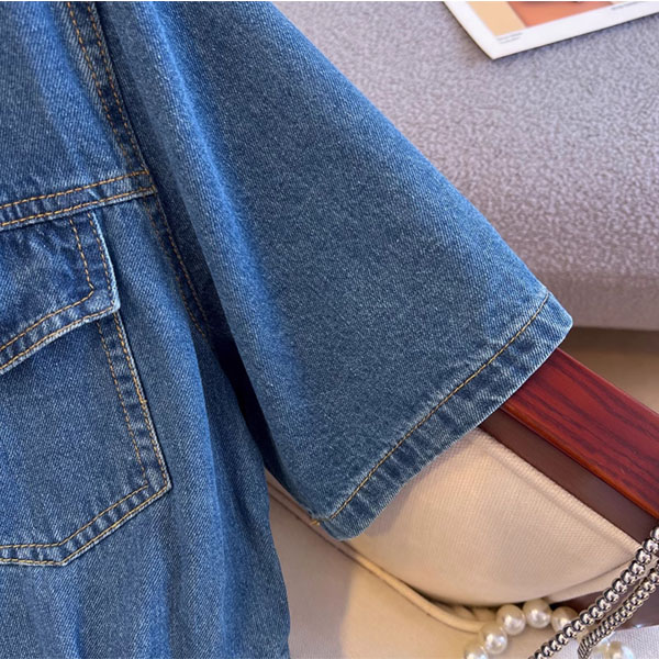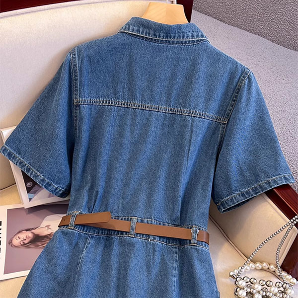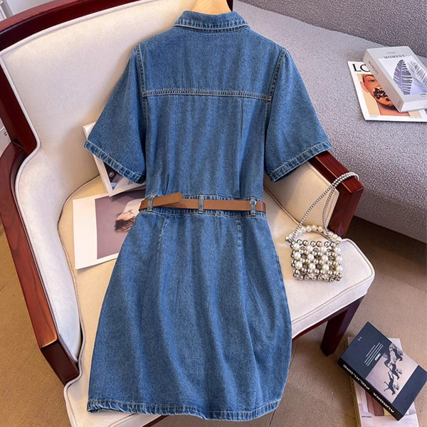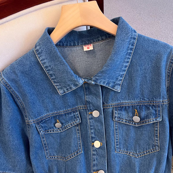 This is a versatile and trendy denim dress that exudes effortless charm and laid-back sophistication. The stand collar adds a touch of structure and modern flair to the dress, creating a polished and stylish look that is perfect for everyday wear. The old-washed denim fabric lends a vintage-inspired vibe to the dress, adding a touch of nostalgia and character to the overall design. Perfect for a casual day out, a weekend brunch, or a shopping trip.