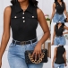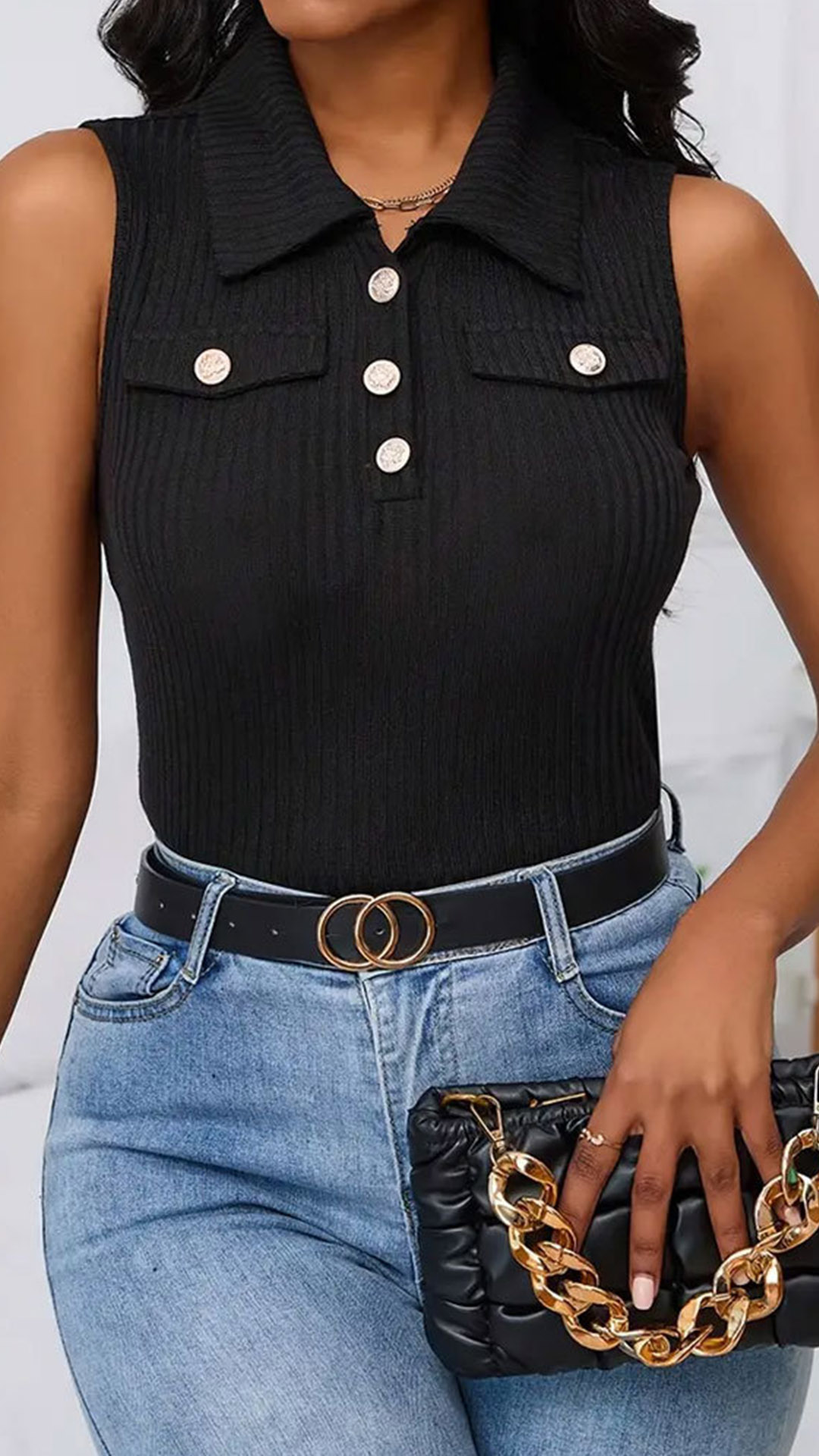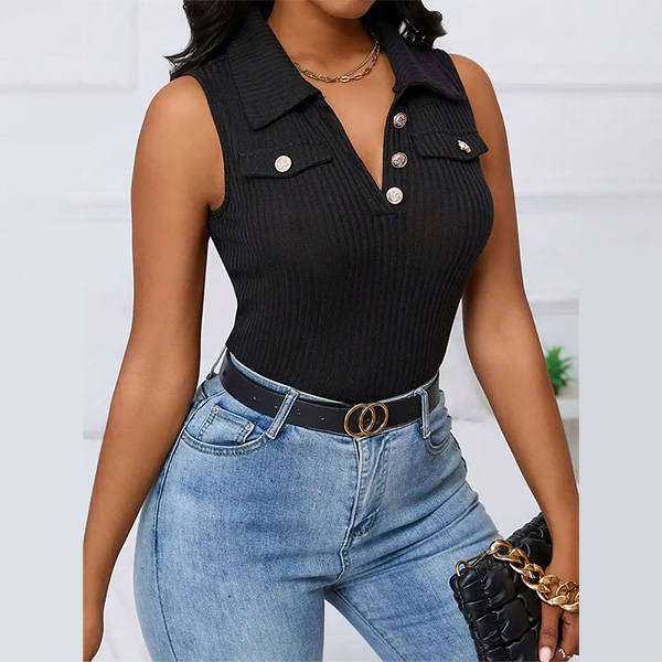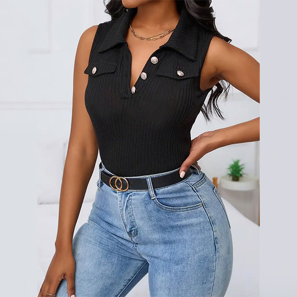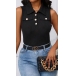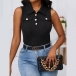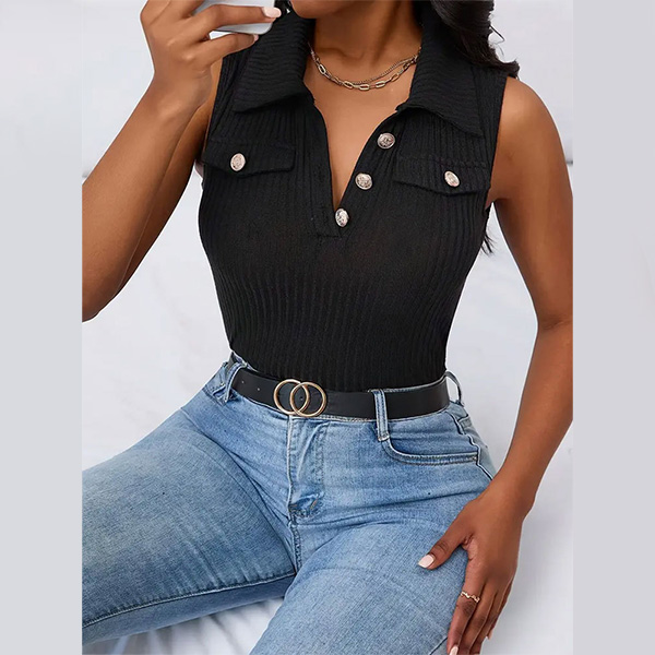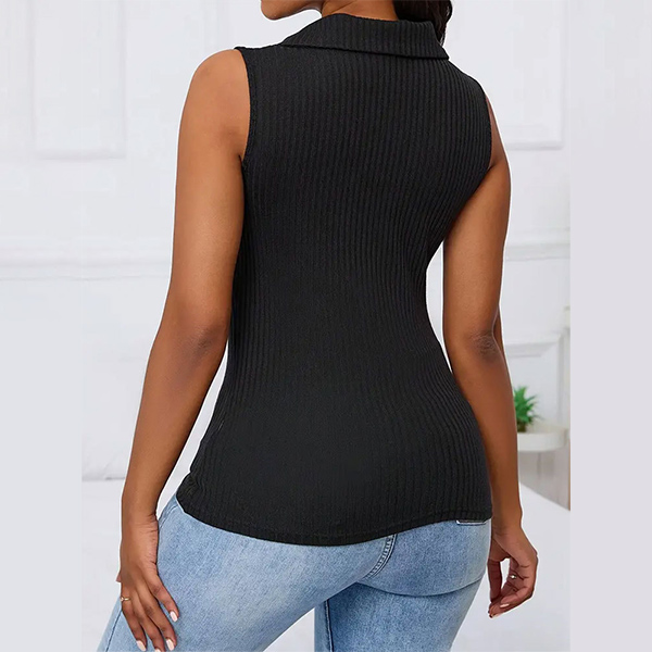 Fashion Stand Collar Sleeveless Button Ribbed Shirt