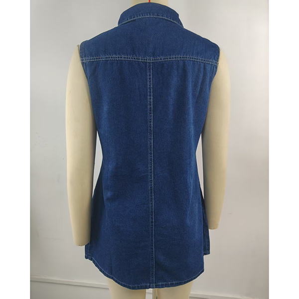 Fashion Stand Collar Sleeveless Front Button Bodycon Old-washed Denim Dress