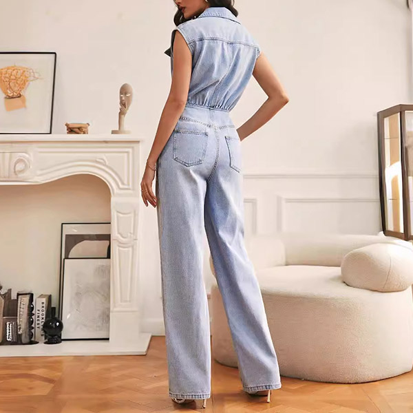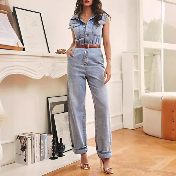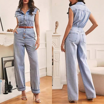 This stylish denim jumpsuit features a stand collar, sleeveless and straight-cut silhouette design, perfect for warmer weather. The front button closure adds a touch of retro flair, while the old-washed denim gives it a vintage and worn-in look. Wanna have a try?