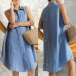 Fashion Stand Collar Sleeveless Front Buttoned Shirt Dress