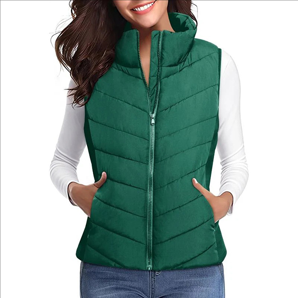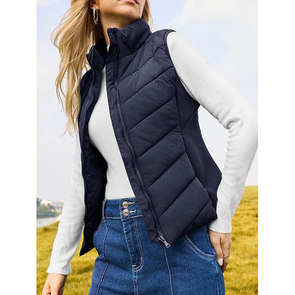 Fashion Stand Collar Sleeveless Front Zipper Quilted Vest