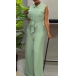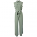 This jumpsuit features a stand collar, sleeveless design, patch chest pockets, self-tie detail cinches in at the waist, and the wide-leg pants add a touch of drama and flair. This jumpsuit is a versatile and fashionable choice for any occasion.