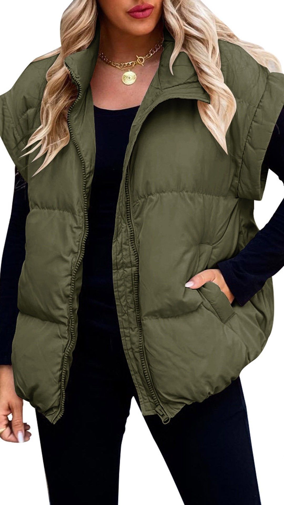 Crafted from high-quality quilted fabric, this jacket is designed to be both fashionable and functional. This sleeveless quilted jacket can be styled in various ways to suit your personal style. Layer it over a long sleeve top and jeans for a casual and chic look, or pair it with a dress and heels for a more dressed-up ensemble.