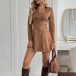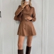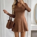 Fashion Stand Collar V-neck Long Sleeve Pleated Dress