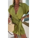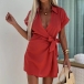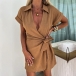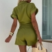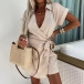 Fashion Stand Collar V-neck Short Sleeve Self-tie Wrap Romper