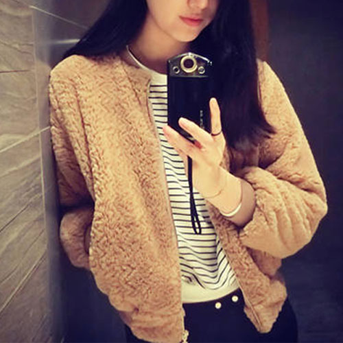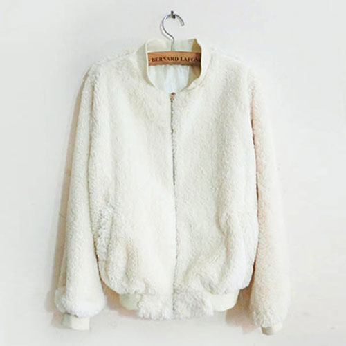 You will stand out and be stylish with this plush coat. Features pure color,fashion stand collar front zipper closure design. Plush material makes it soft and warm to wear. You will spend a unique and wonderful winter because of this coat.