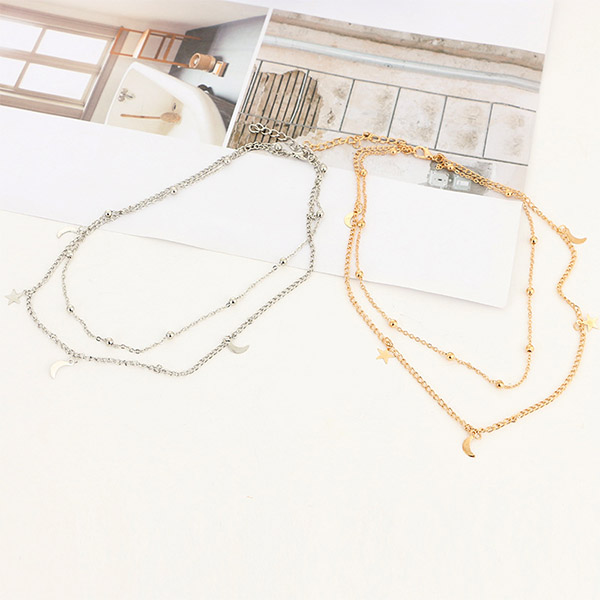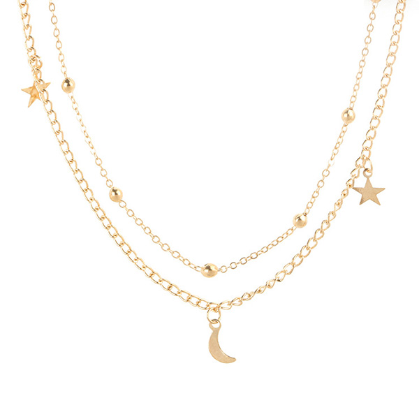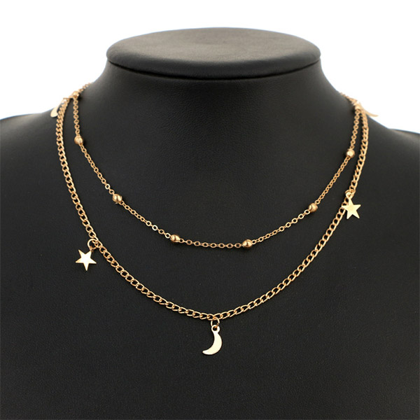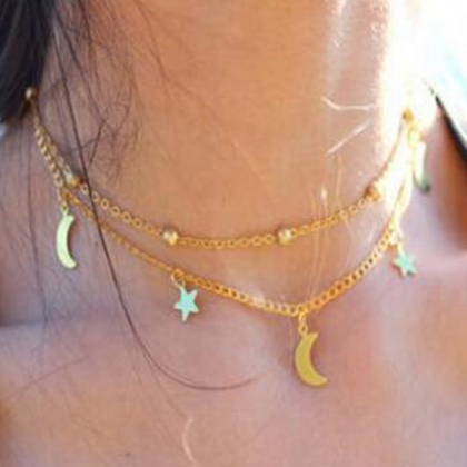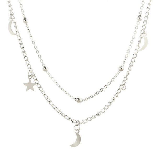 This necklace is designed with double-layer style,decorated with star and crescent pendants,chic and stylish. It not only can embellish your neck,but also can lend you a dash of stylish vibes to your overall look.