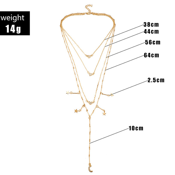 This multi-layer necklace comes with a classic yet stylish gold tone,decorated with crescent and star pendant,romantic and chic. When you wear it,your entire charm can have an instant boost!