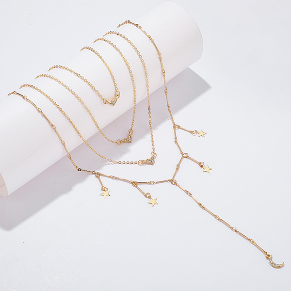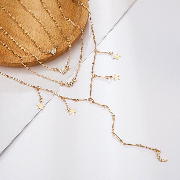 Fashion Star Crescent Pendant Multi-layer Necklace