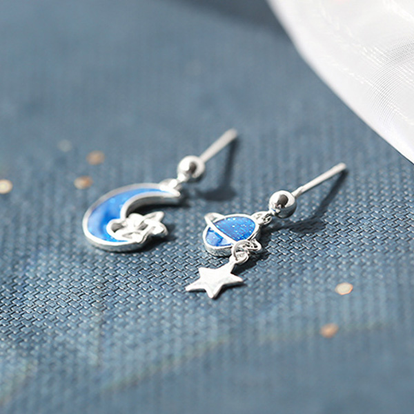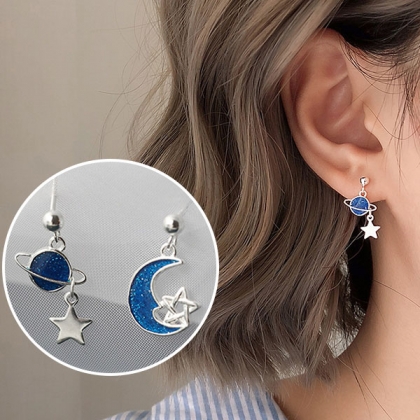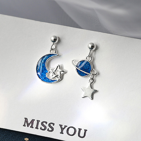 Bright up your day with the help of this pair of stud earrings. Asymmetric design makes it look so stylish and attractive. And the star,crescent shaped design will further enhance its charm. You can trust these pieces to boost your charm.