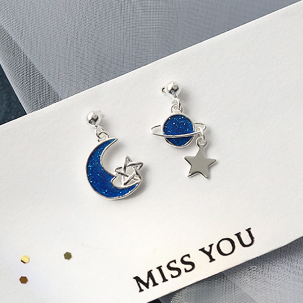 Fashion Star Crescent Shaped Asymmetric Stud Earrings