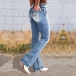 These trendy jeans feature a high-rise waist that cinches in at your natural waistline for a flattering and comfortable fit. The star embroidery detail on the back pockets adds a fun and whimsical touch, giving these jeans a unique and eye-catching appeal. Wanna have a try?