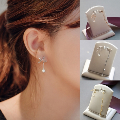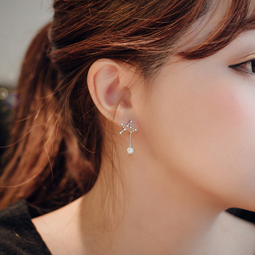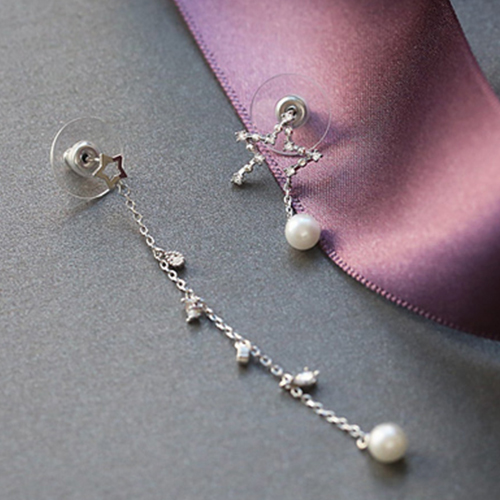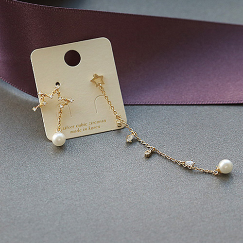 Fashion Star Pearl Tassel Asymmetric Earrings