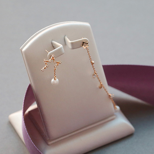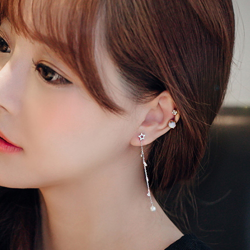 Complete your charming party look with these stunning earrings. Asymmetric design with star,pearl and tassel