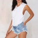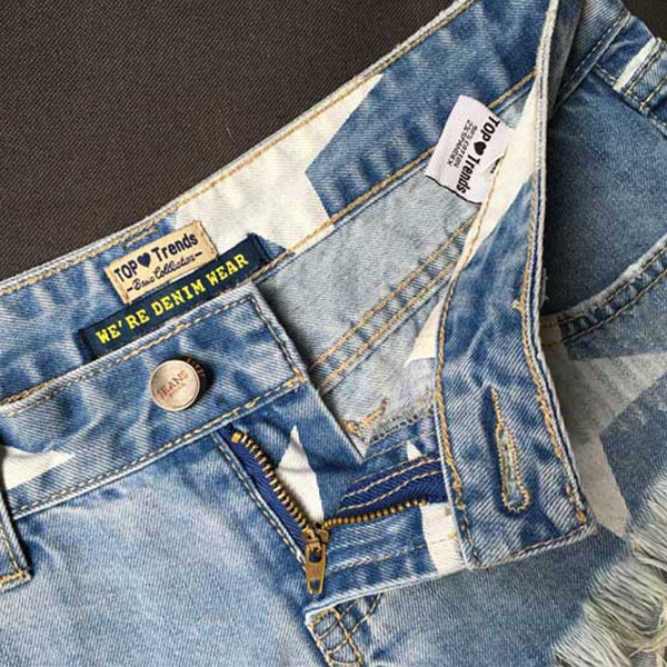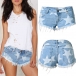 Fashion Star Printed Frayed Hemline Old-wash Denim Shorts