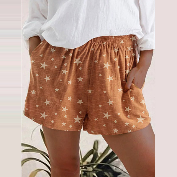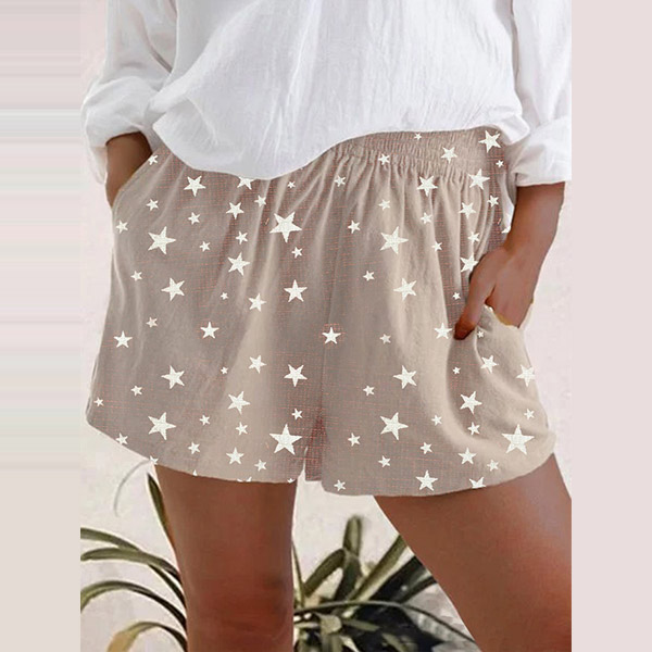 It is a good chance to showcase your charming and slender legs with this shorts. The star printed details make this piece look more stylish and attractive. Crafted from soft,breathable fabric and a high waist design,this shorts can offer you a laid-back and fashionable look by teaming with a simple t-shirt.